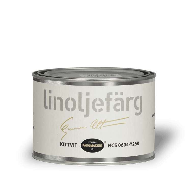 Tillverkad på svensk kallpressad kokt linolja och färgpigment.